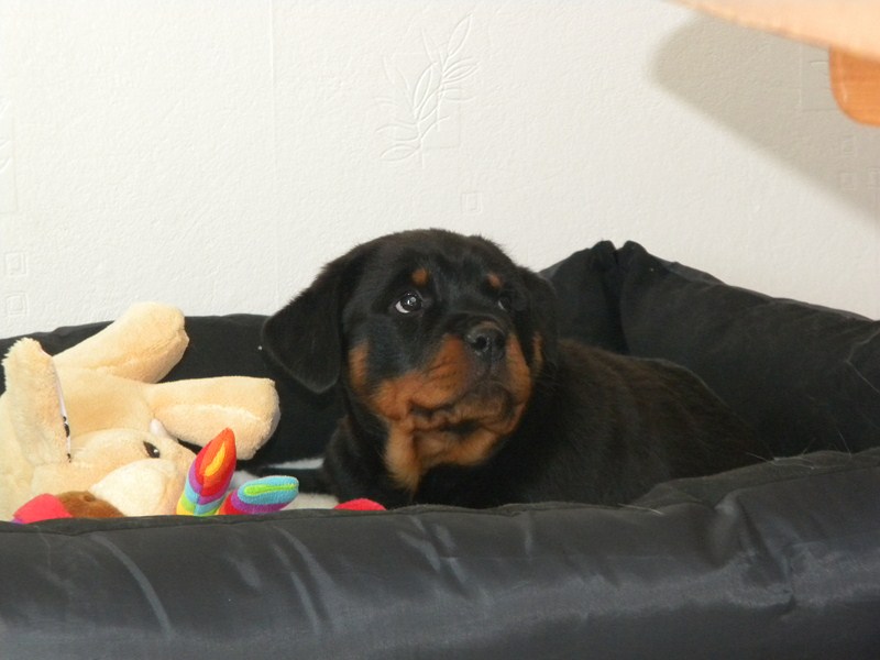 Voici ma petite Beltza. c'est une femelle rottweiler née le 2 février 2012