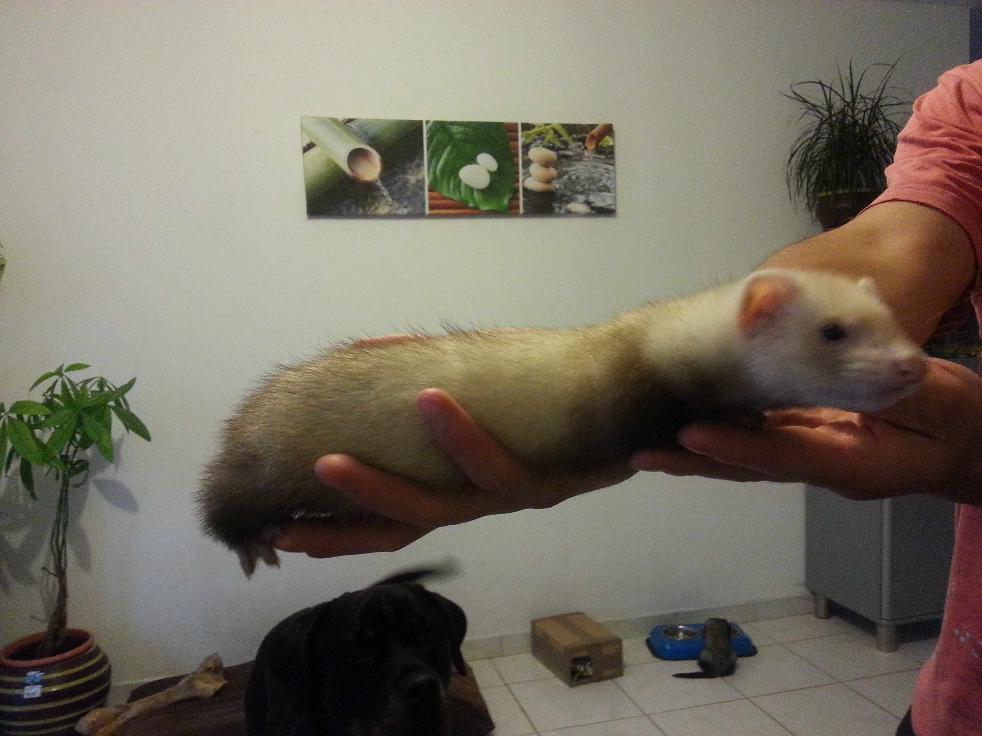 Voici notre petit furêt stich la nouvelle copine de stitch Gipsie elle vient de dordogne, elle est née le 26 avril 2013. Elle s'entend trés bien avec le petit chien Hetan.
